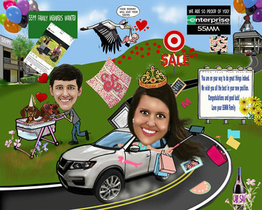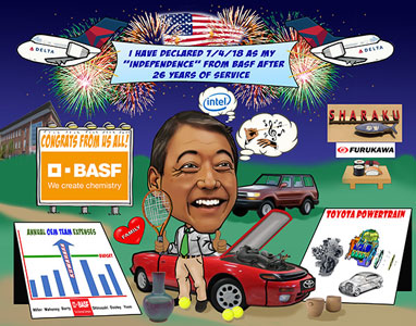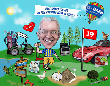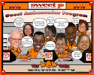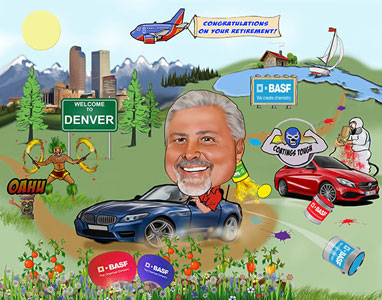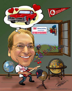 Every month for 20 years Keith has created a personalized caricature of our Employee of the Month. The unique award is highly coveted in our office, and the pictures are loved by all our employees. We prominently display the last twelve EOM caricatures at the front of our office, and our clients really enjoy stopping to look at our lively wall-of-fame. As the award rotates out of display, it is given to the employee as a gift. It is a fun, unique award that our employees are proud to display! Creative Lines, Inc. has been an incredible morale booster for our company, and I highly recommend their work.
