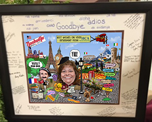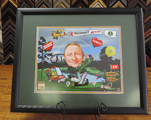 Illustrations include tastefully created caricature of the individual, perfectly captured interests, hobbies, activities, travel and/or family events. All this in a professional presentation, ready for display in office or home – and a piece that makes a cherished reminder of time well-spent!